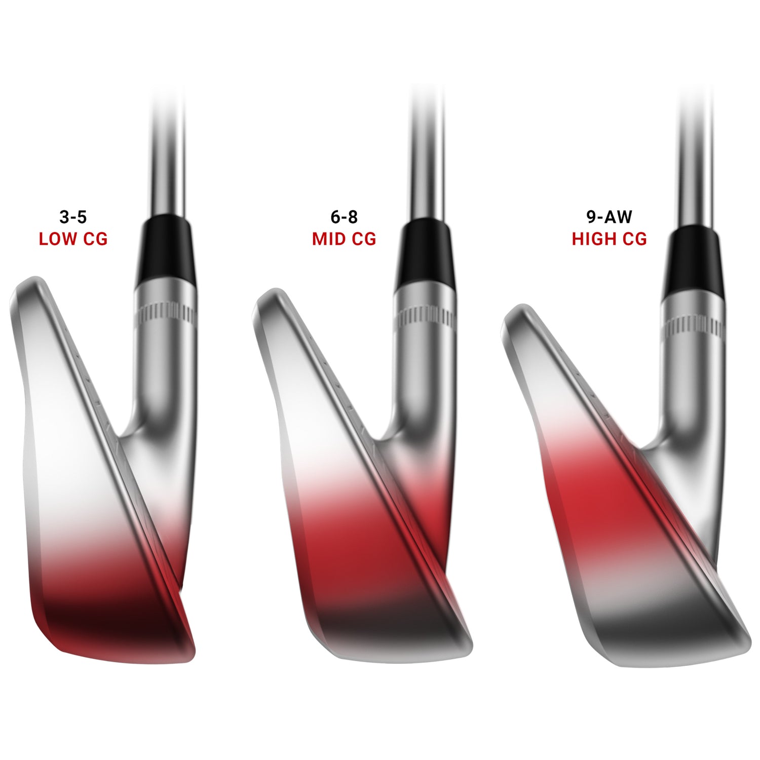 Progressives CG-Design für zusätzliche Kontrolle - Ein progressiver Schwerpunkt im gesamten Set verbessert die Flugbahnkontrolle. Die langen Eisen haben einen niedrigeren Schwerpunkt, der hohe Schläge fördert, die weich auf den Grüns landen, während die kurzen Eisen einen höheren Schwerpunkt für eine niedrigere Flugbahn nutzen, um mehr Spin für zusätzliche Kontrolle zu fördern.