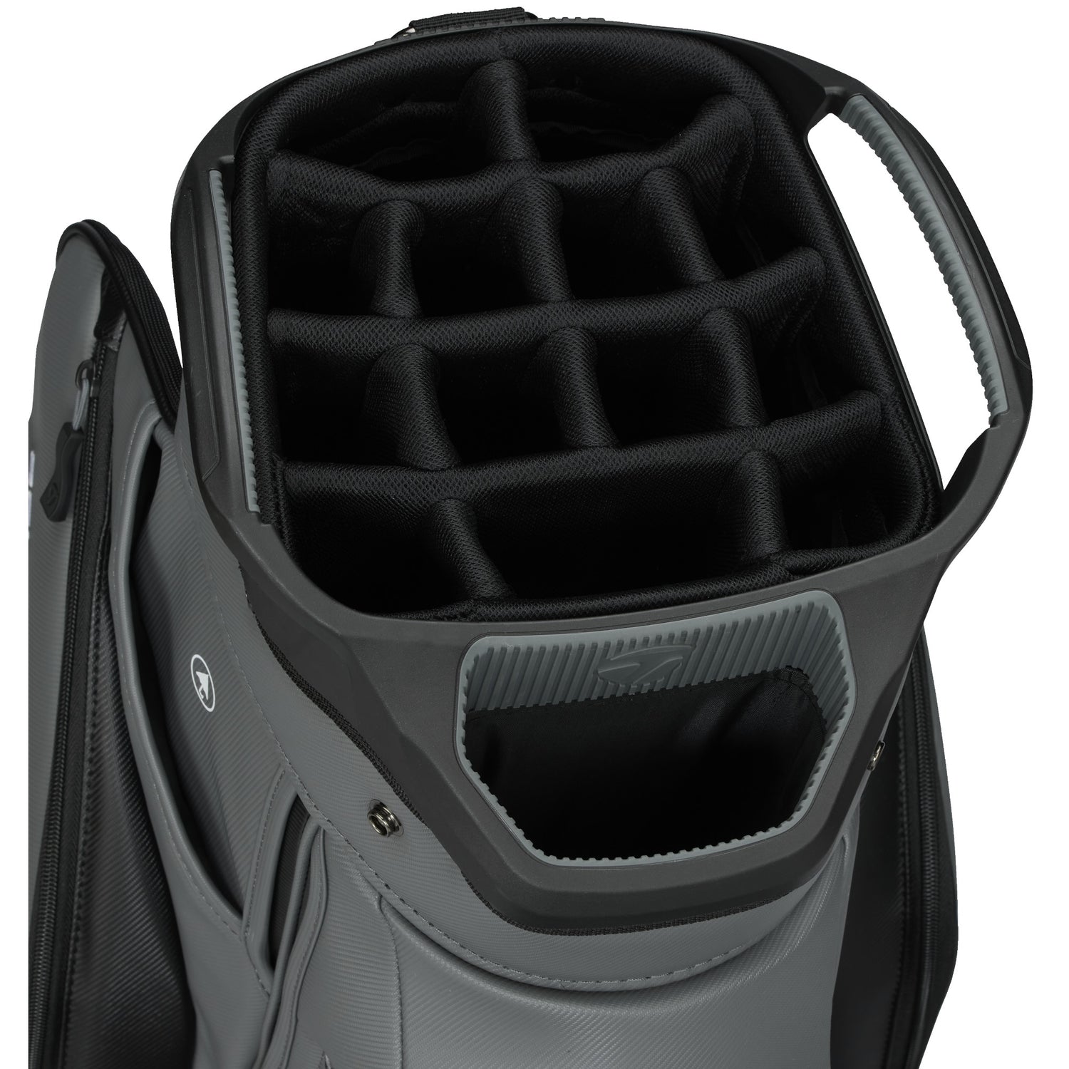 Kühlfach (Cooler Pocket): Ein isoliertes Fach, das an warmen Sommertagen Ihre Getränke und Snacks angenehm kühl hält. Ausreichend Flüssigkeit ist essenziell für Ihre Konzentration auf den Back Nine.